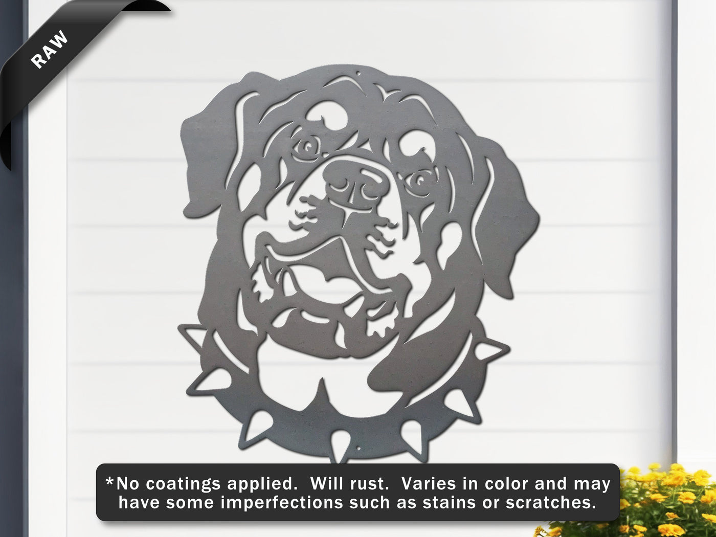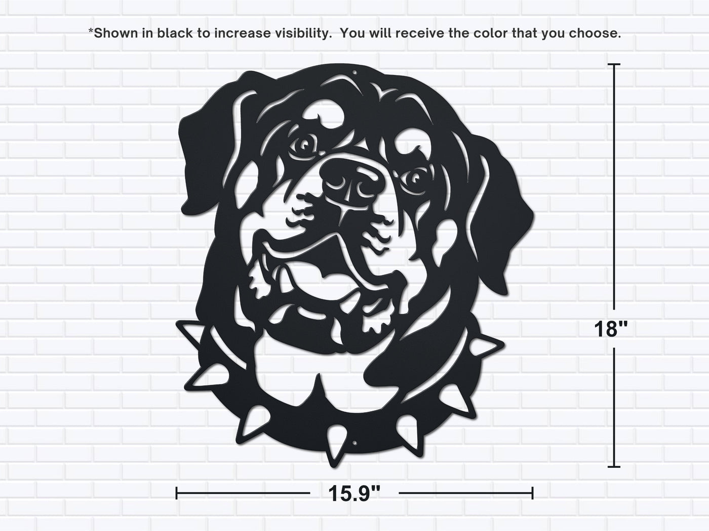 Bring bold personality to your space with this Rottweiler wall sign, crafted from heavy-duty 14-gauge steel. Featuring a detailed cutout of a Rottweiler head with spiked collar, this piece is perfect for dog owners, pet lovers, and anyone who wants to showcase their love for man’s best friend.